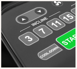 Угол наклона бегового полотна изменяется в пределах 0 - 15% электрическим способом