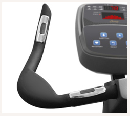 Эффективная и комфортная тренировка возможна за счет наличия многопозиционного руля с подлокотниками и дублирующими датчиками пульса.
