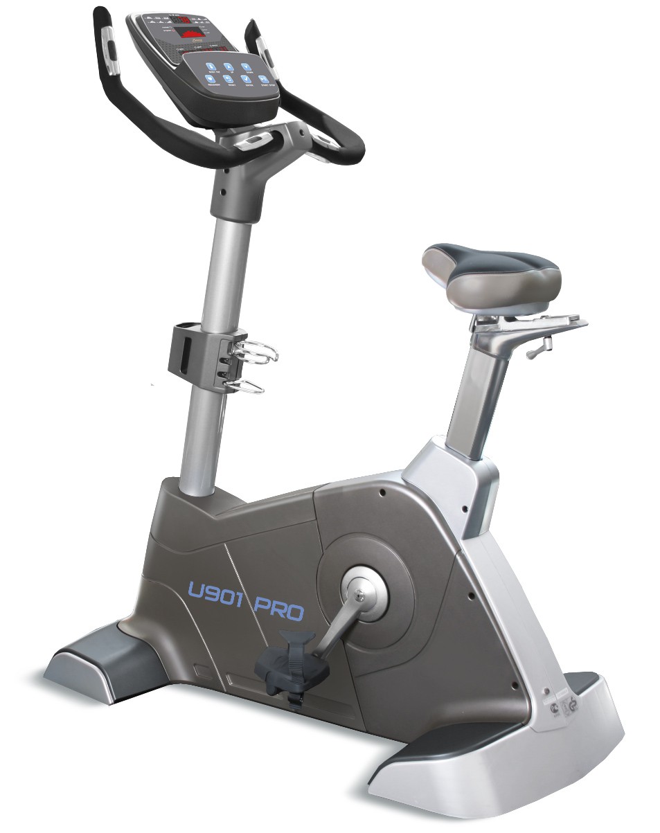 Вертикальный велоэргометр U901 PRO бренда Bronze Gym, созданный на базе модели U900 PRO, отличается от своего предшественника измененными консолями эргометра, относится к серии профессиональных тренажеров. В новой модели U901 PRO появился многофункциональный LED дисплей. На базе EMS генератора создана электромагнитная приводная система, трехкомпонентный педальный узел, в котором используется литой кованный облегченный кривошип, сбалансированный маховик весом 12 кг, очень качественные подшипники. Все эти характеристики обеспечивают идеальный плавный ход тренажера.