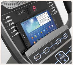 В наличие также жироанализатор BodyFat и функция Recovery, которая отвечает за восстановление организма после тренировки. Также в качестве полезной опции можно назвать специальную подставку под мобильные устройства, во время занятия можно смотреть видео в интернете. Тренажер оснащен транспортировочными роликами и компенсаторами неровности пола. Он рассчитан на пользователей весом до 160 кг.