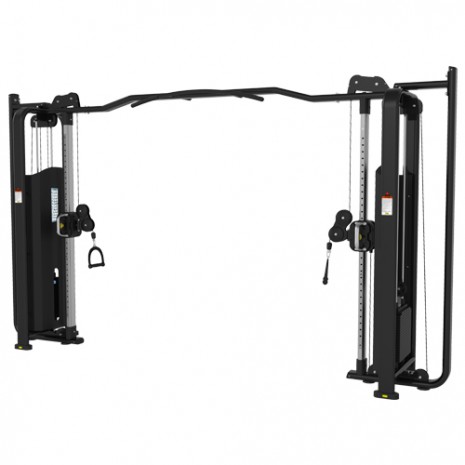 Тренажер предназначен для профессионального использования, он оснащен усиленной станиной размером 50х120 мм. Толщина профиля составляет 2,5 мм. Направляющие, которые регулируются по высоте, изготовлены из высокопрочного алюминия. На кроссовере установлена специальная защита стека и турника. Тренажер оснащен весовыми стеками, вес каждого по 80 кг. Они расположены с обеих сторон тренажера.