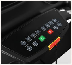 Беговая дорожка оснащена консолью, которая представляет собой настоящий тренировочный компьютер. Консоль оснащена LED дисплеем с точечной матрицей. Основной экран дополнен 4-мя небольшими буквенно-цифровыми LED-дисплеями с белой подсветкой. Мониторы позволяют качественно отслеживать тренировочный процесс с помощью отображаемых на них параметров тренировки, таких как анимированный программный профиль, скорость, дистанция, время, угол наклона, шаги, калории, пульс, индикатор напоминания о необходимости смазки. На консоли предусмотрены клавиши быстрого выбора скорости и угла наклона.