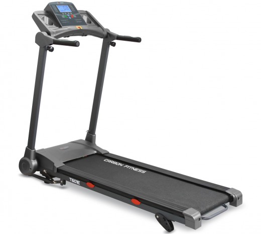 Компактная дорожка-трансформер T601Е компании Carbon Fitness, которую легко соберет даже непрофессионал, скоростной максимум - 14 км/ч, имеет 16 тренировочных программ. Размер полотна – 120*40 см. Угол наклона можно регулировать механически (3 уровня). Двигатель – 1, 75 л.с. Надежная система амортизации имеет запатентованную технологию Park-IN™ - двойная дека, плоские эластомеры, 4 подушки. Все это создает иллюзию бега по лесной тропинке. Компьютер с дружественным интерфейсом выводит на дисплей все основные показатели занятий. Имеется также жироанализатор.Предельный вес пользователя до 120 кг.