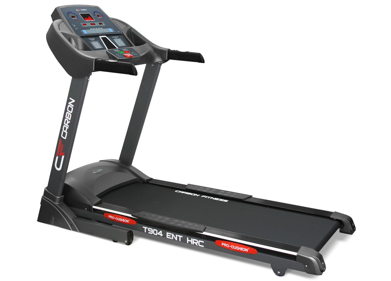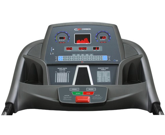 Высокотехнологичный тренажер премиум-класса T904 ENTHRC компании Carbon Fitness для профессионалов, подстраивается под индивидуальный тренировочный режим, скоростной максимум - 20 км/ч, имеет 27 тренировочных профилей (включая пульсозависимые). Размер полотна – 152 x 51 см. Электронаклон угла (до 20°). Двигатель – 3, 5 л.с. качественная амортизационная система базе цилиндрических эластомеров. Гидравлическая система EasyDrop™ гарантирует удобное и безопасное складывание / раскладывание трансформера. Компьютер с дружественным интерфейсом (5 дополнительных дисплеев) выводит на дисплей все основные показатели занятий. Частота сердечных сокращений определяется беспроводным способом. Предельная весовая нагрузка - 160 кг. Дополнительные функции: в консоль встроены колонки.