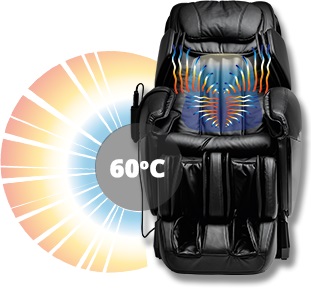 В спинке кресла расположены керамические пластины, которые могут разогреваться до 60°С. Ни одно другое массажное кресло не обеспечивает такого прогрева. При нагревании кресла в организме, чтобы избежать перегрева, расширяются сосуды, что приводит к усилению кровотока и ускорению обмена веществ, а следовательно, восстанавливается тело. При таком прогреве из организма интенсивно выводятся токсины и шлаки. Мышцы полностью расслабляются, благодаря чему действенность массажа увеличивается за счет глубокого разминания мышц.