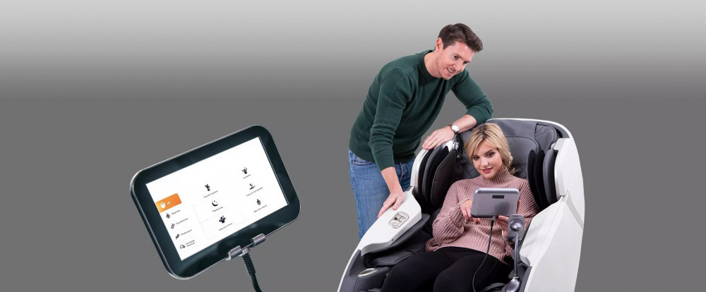 Большой ЖК-экран с сенсорным управлением: выбирайте программы массажа, настраивайте под себя, следите за ходом массажа через экран.