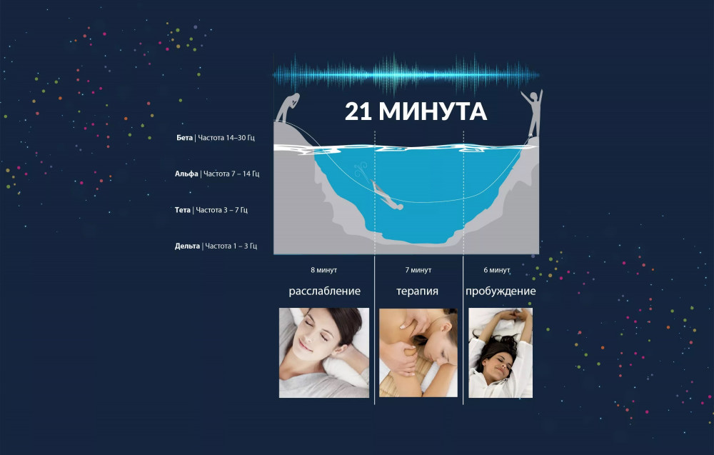 Для восстановления и глубокого расслабления во время аудиостимуляции используются тета- и дельта-волны.