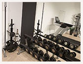 Такая зона, как правило, располагается вблизи зоны силовых тренажеров, порой объединяясь с ней. Зона свободных весов оснащается в гармонии с общей концепцией клуба. Обязательным является наличие в тренажерном зале зеркал.