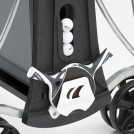Стол можно будет без усилий перемещать на сдвоенных колесах, диаметр каждого колеса составляет 200 мм. На двух колесах установлены надежные тормоза, управлять которыми можно одной ногой. На углах установлены специальные накладки. Они обеспечат защиту детей от возможных травм. Кроме того, для удобства пользователей на столе установлены специальные держатели для 6 мячей и 4 ракеток.