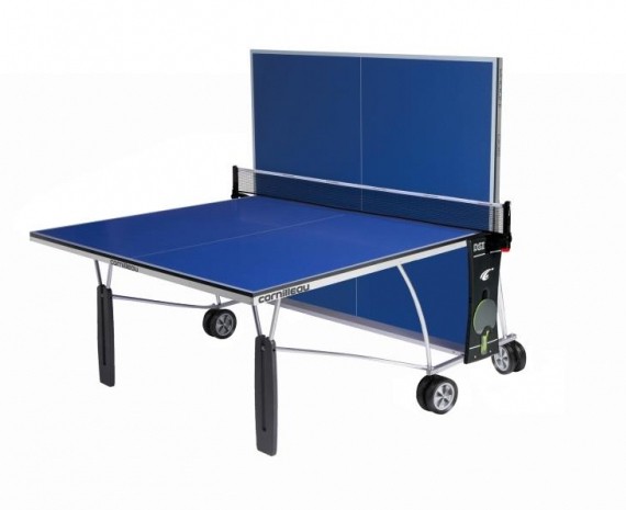 Любительский стол 250 Indoor создан для игры в помещениях. Чтобы его было удобно перемещать, полимерные опоры имеют 4 сдвоенных колеса с тормозными устройствами. Система Compact Technology гарантирует компактность и простоту складывания стола. Для уверенной фиксации в таком положении имеется автоматический механизм, который можно отпереть одной ручкой. Встроенная сетка может быть отрегулирована по высоте и силе натяжения. Стол снабжен держателями для размещения 6 мячей и 2 ракеток.