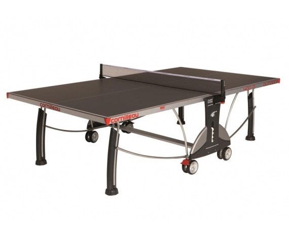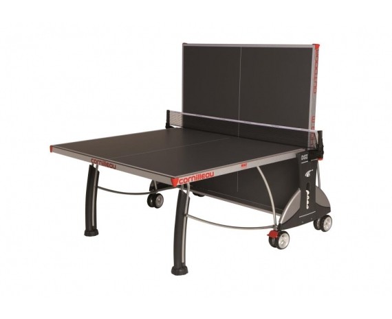 Замечательный любительский стол нового поколения 400M Outdoor идеально подходит для уличного использования. Удобство перемещения и маневренность обеспечиваются обрезиненными колесами, для устойчивости на них имеются тормозные устройства, а также полимерные накладки на металлических регулируемых опорах. Стол компактен, его просто раскладывать благодаря автоматической системе фиксации, которую можно отпереть одной ручкой. Доработанные углы игрового поля снабжены защитными подушками, берегущими игроков от травм. Встроенная сетка автоматически убирается при складывании стола, также ее можно отрегулировать по силе натяжения и высоте. Для удобства стол имеет антибликовое покрытие и отсеки для хранения ракеток в кожухе и мячей.