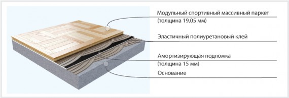 Помимо этого, предусмотрена специальная амортизирующая подложка. Для фиксации неразборной конструкции имеется особо прочный эластичный клей. Сборно-разборный паркет FITNESS MOSAIC с замковым соединением отличается высокой износостойкостью и невосприимчивостью к всевозможным механическим повреждениям.