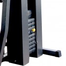 Стек весовой имеет общую массу 50 кг, сверху он закрыт специальным защитным кожухом. В комплекте имеется 10 плит, вес каждой составляет по 5 кг. Благодаря установке роликов на подшипниках обеспечивается плавность движений.