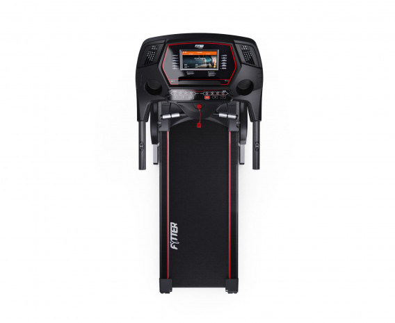 Беговая дорожка Fytter 12X предлагает 80 предустановленных программ, быстрый старт, интервальный режим и возможность создания индивидуального плана тренировки. Сенсорные датчики на поручнях позволяют контролировать частоту сердечных сокращений. Встроенный bluetooth-передатчик совместим с фитнес-аксессуарами, такими как браслет или нагрудный датчик пульса. USB-порт позволяет передавать файлы на беговую дорожку и заряжать гаджеты.