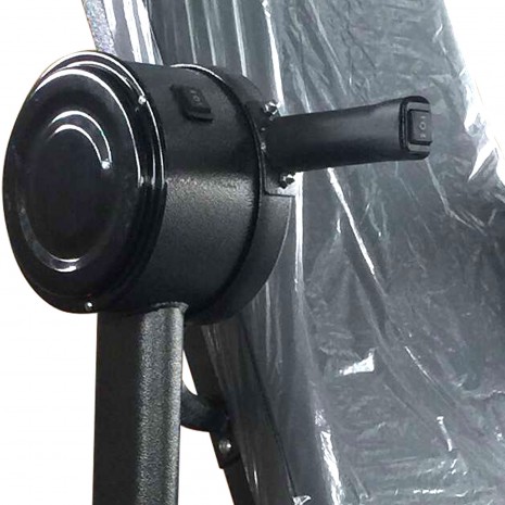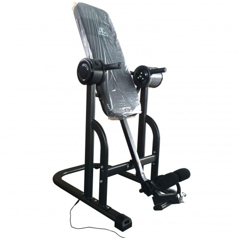 Изделие оснащено 2 моторами, выполняющими разные функции: переворот корпуса и закрепление лодыжек. Для управления моторами используются 2 кнопки на правом поручне. Работа L001 от DFC осуществляется при подаче напряжения в 220В. Как только оно падает, изделие возвращается в стартовую позицию и отключается посредством нажатия специальной кнопки на корпусе.