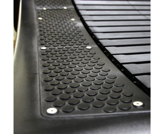 Для производства бегового полотна использовали 60 накладок, изготовленных из качественной резины. Каждая накладка имеет размеры 480х60 мм, полотно двигается по специальным подшипникам, которые расположены в два ряда, в каждом по 60 штук.