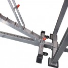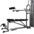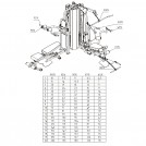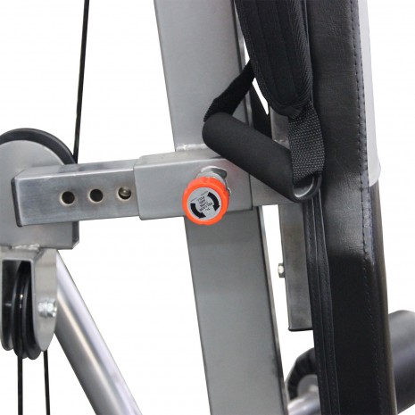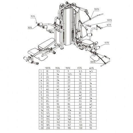 Оборудование предназначено для одновременной работы на нем 2 пользователей. Оно оснащено 2 весовыми стеками, скрытыми в пластиковых коробах. В каждом стеке размещается по 5 плит общим весом 18 кг. Они соединены армированными тросами.