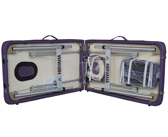 За счет алюминиевых частей в рамной конструкции массажный стол отличается легким весом, который составляет 9 кг. Благодаря складной конструкции модель удобна для транспортировки и хранения. Для удобства переноски комплектация массажного стола включает сумку-чехол.