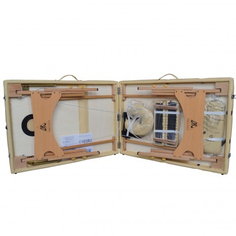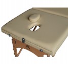 Массажный стол состоит из 3-х секций. Секция для ног поднимается, и угол ее наклона регулируется в 10-ти положениях. В верхней секции имеется отверстие для лица с заглушкой.