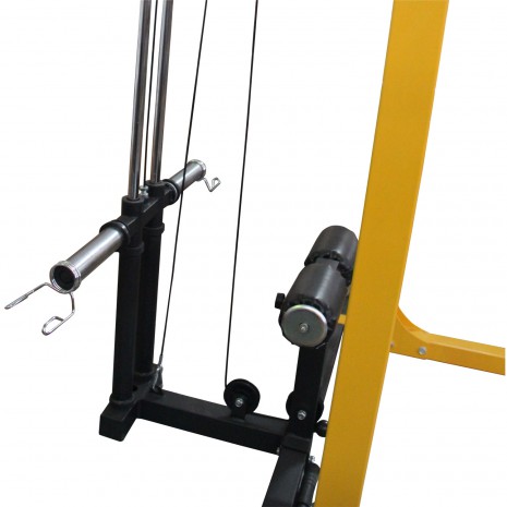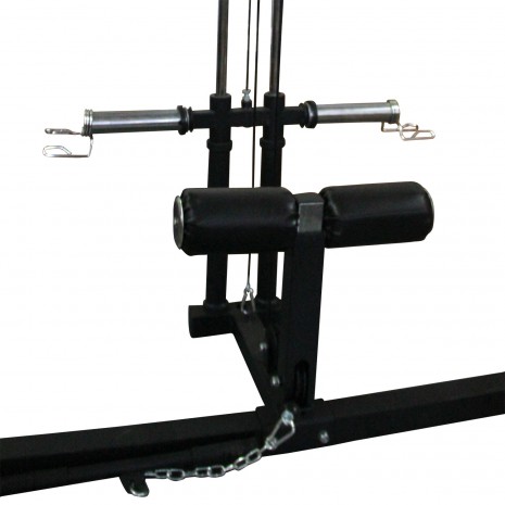 Комплект дополнен турником с возможностью различных хватов, универсальной скамьей (SUB064), скобами для штанги и тягой сверху и снизу.