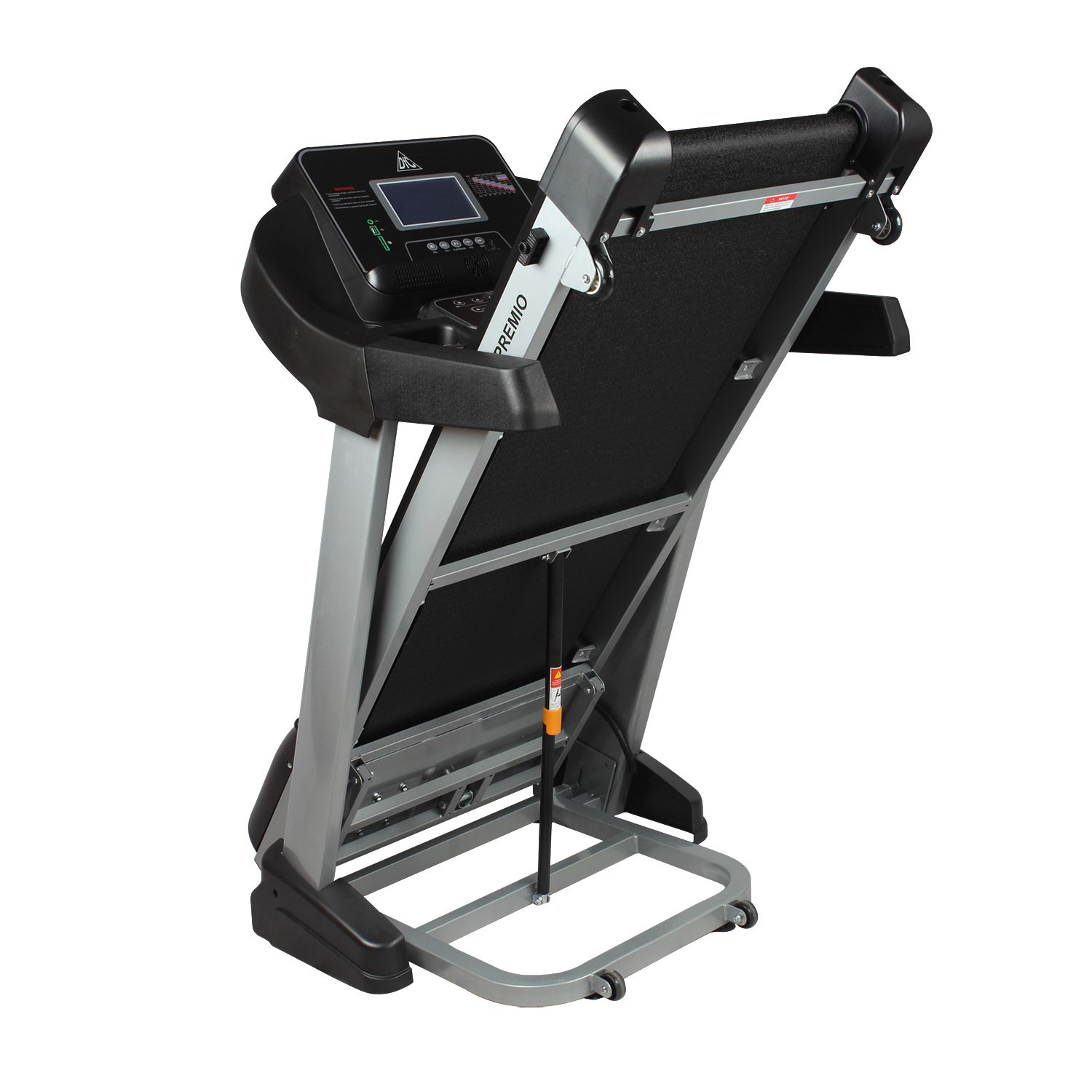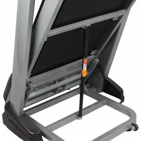 Беговая дорожка имеет складную конструкцию, что обеспечивает удобное хранение тренажера, когда он не используется. Мягкое и безопасное складывание дорожки обеспечивает гидроцилиндр. Для удобного перемещения в конструкции тренажера предусмотрены транспортировочные колеса.