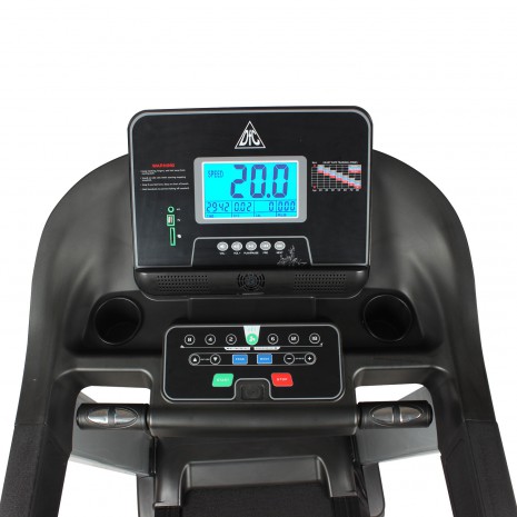 Беговая дорожка оснащена удобной консолью с информативным LCD дисплеем, на котором отображаются все необходимые тренировочные параметры, в том числе пройденное расстояние, скорость, время тренировки, пульс и затраченные калории.