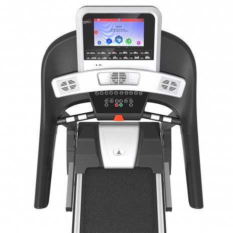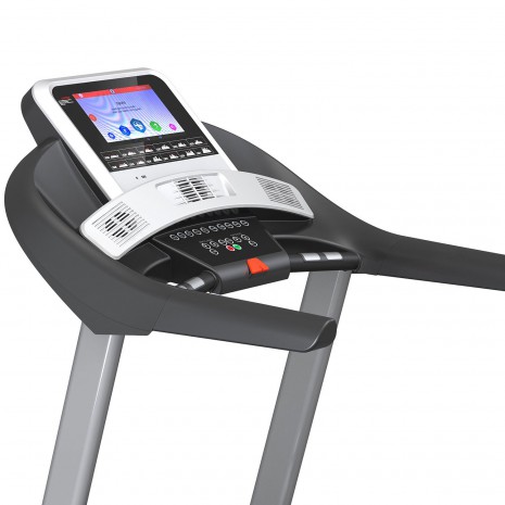 Беговая дорожка оснащена современной консолью с большим легко читаемым сенсорным цветным TFT-дисплеем размером 10,1 дюймов, с помощью которого осуществляется доступ к функциям тренажера и управление им.