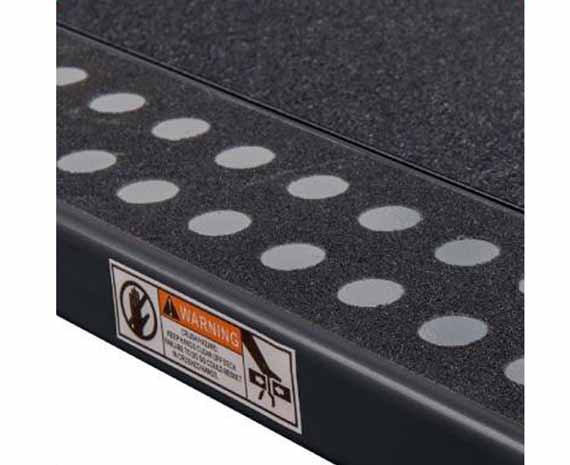 По обе стороны от бегового полотна расположены подножки с нескользящим покрытием, что позволяет удобно заходить на беговую дорожку и сходить с нее.