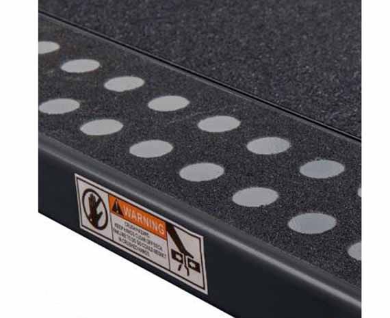 Подножки, расположенные по обеим сторонам бегового полотна, снабжены антискользящим покрытием.