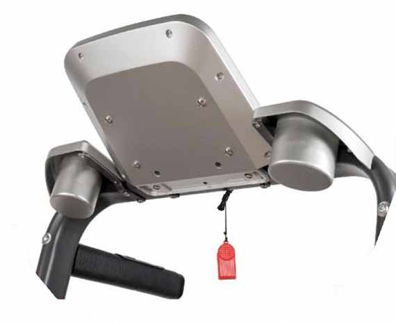12 положений угла наклона бегового полотна (электрическая регулировка). Регулировка угла наклона и скорости в диапазоне 1-16 км/ч обеспечивается сенсорными кнопками и дублирующими кнопками, расположенными на поручнях. Поручни снабжены датчиками пульса.