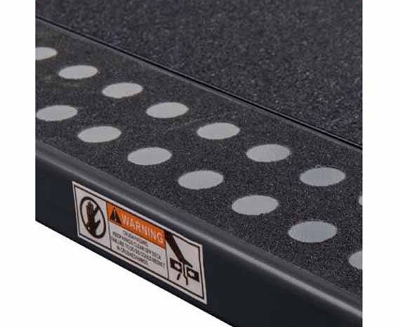 Подножки, расположенные по обеим сторонам бегового полотна, имеют антискользящее покрытие.