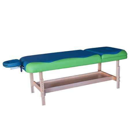 SUPERIOR TS200 от DFC сделан из прочных материалов: дерево, искусственная кожа и поролон. Оборудование регулируется по высоте (минимальное значение – 66 см, максимальное значение - 86 см). Длина стола – 1 м 92 см, ширина – 71 см. Помимо DFC SUPERIOR TS200, в комплект включены подголовник, подлокотник и заглушка для люверса. В нижней части изделия размещается полка для хранения личных вещей и вспомогательных аксессуаров.