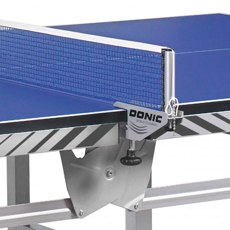 Теннисный стол Delhi 25 бренда Donic – профессиональный стол синего цвета, представленный в новом дизайне. Он представляет собой модернизированную и усовершенствованную модель, которая является эталоном надежности. Среди элементов, которых коснулись изменения, можно назвать складные ножки и штуцеры колес. Ножки теперь изготавливаются из усиленного профиля, а переработанные штуцеры колес обеспечивают большую стабильность рамного основания стола.