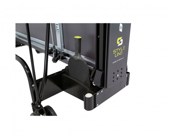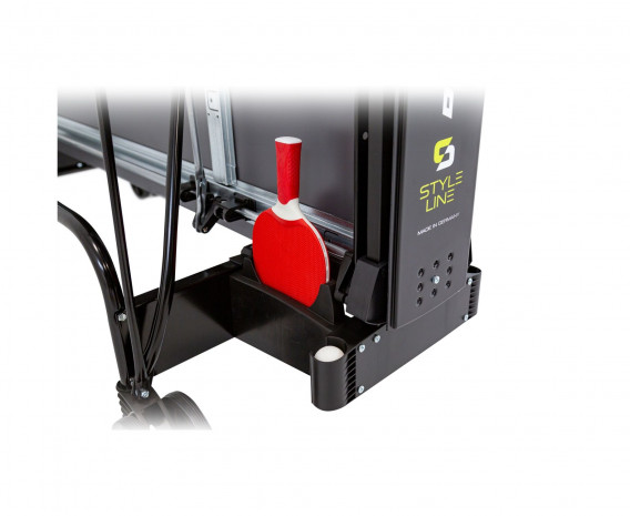 Сетка для настольного тенниса регулируется по высоте и подходит для игры как на открытом воздухе, так и в помещении. В комплекте со столом поставляется держатель для ракеток и мячиков.