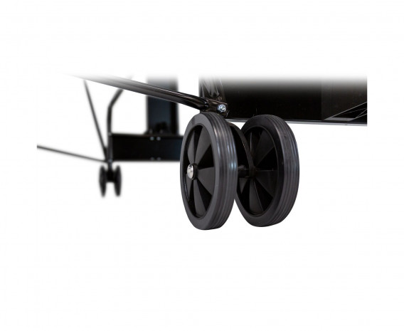 Прорезиненные двойные ролики диаметром 128 мм обеспечивают плавное перемещение стола, а механизм защиты от опрокидывания гарантирует безопасность во время игры.