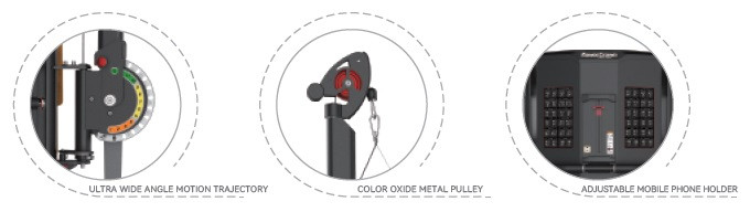 Тренировочные рычаги имеют вертикальную регулировку в диапазоне 180 градусов (13 положений фиксации) и горизонтальную в диапазоне 90 градусов (6 положений фиксации), за счет чего обеспечивается большая свобода при выполнении упражнений, а также тренажер является идеальным для любого уровня подготовки.