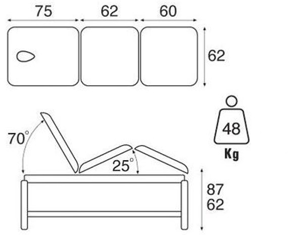 Массажный стол легко и оперативно подстраивается под необходимые параметры. В зависимости от потребностей, изменение рабочего диапазона осуществляется ступенчато от 62 см до 87 см. Чтобы вставить специальные механические фиксаторы, в ножках конструкции имеются технологические отверстия. Благодаря таким фиксаторам, обеспечивается дополнительная прочность модели. Секция спинка регулируется отдельно, при этом максимум составляет 70 градусов. Секция для ног настраивается совместно со средней секцией, предоставляя возможность изменений не более 25 градусов.