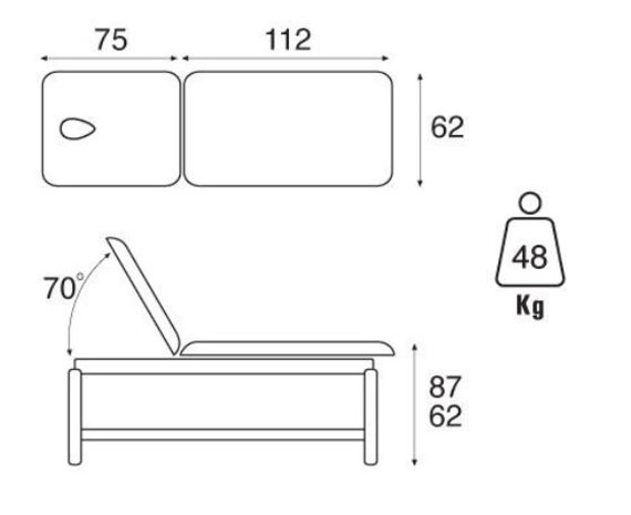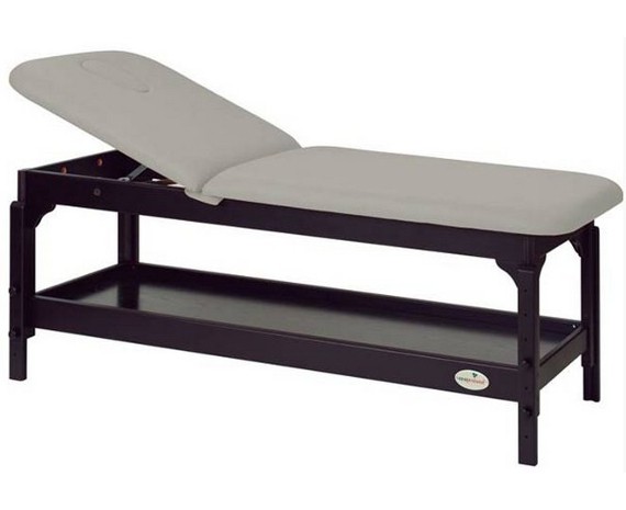 Рабочую поверхность данного массажного стола можно легко настроить от 62 см до 87 см. Небольшие четыре ножки выполнены из двух совмещенных частей, надежно скрепленных между собой. Благодаря специальным механическим фиксаторам, можно установить оптимальные параметры настройки. Кроме того, в конструкции встроена регулируемая секция спины, максимальный угол подъема которой составляет 70 градусов.
