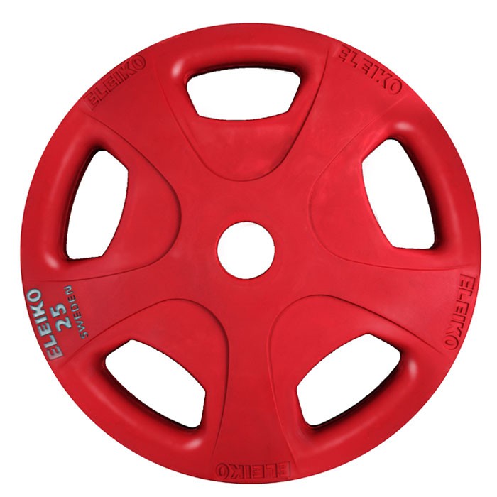 Обрезиненный диск 324-0250С компании Eleiko предназначен для фитнеса. Для удобного хвата предназначены специальные ручки.