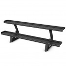 Двухуровневая стойка для гирь имеет горизонтальную конструкцию, что обеспечивает удобный доступ к снарядам.