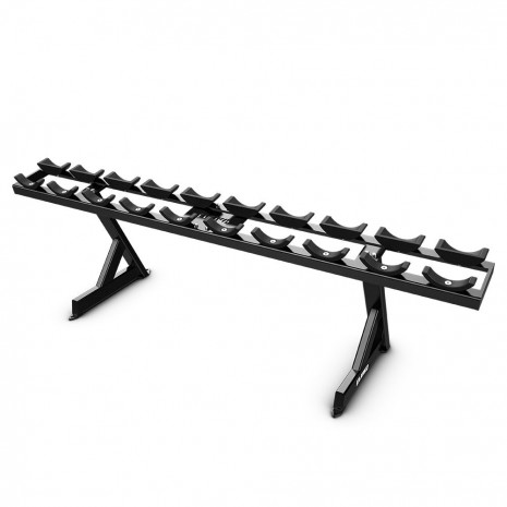 Одноярусная стойка для гантелей Single Tier Pro Dumbbell Rack 3002379-010 бренда Eleiko – устойчивая подставка, предназначенная в первую очередь для хранения гантелей Eleiko Pro, Eleiko Vulcano Disc и Eleiko Vulcano, но при этом она универсальна и подходит для большинства типов гантелей. Стойка вмещает до 5-ти пар гантелей.