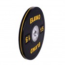 Легкая идентификация веса за счет цветной полосы по окружности диска и выпуклых цветных надписей в палитре олимпийского стандарта. Диск весом 15 кг маркируется желтым цветом.
