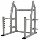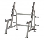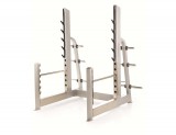 Регулируемая присед-стойка, которая также может использоваться в качестве подставки для штанги вместе со скамейкой для жима.