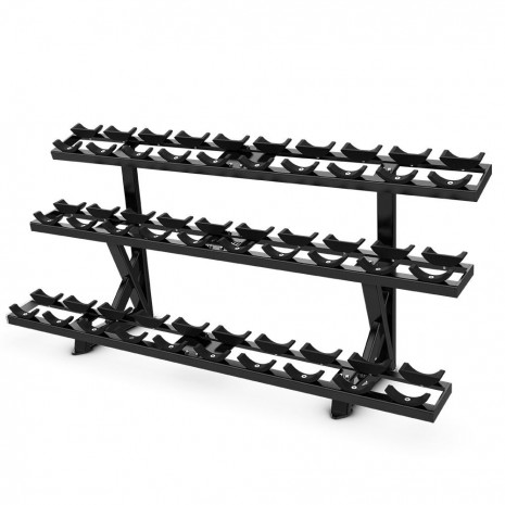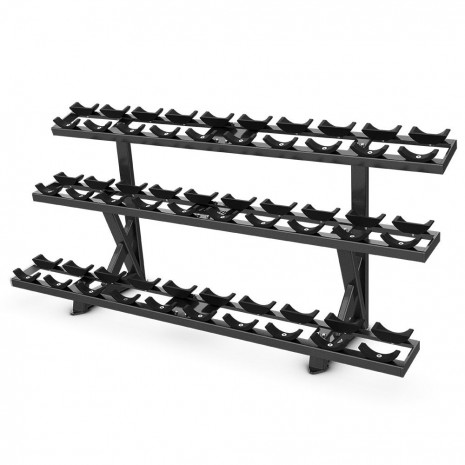 Трехъярусная стойка для гантелей Triple Tier Pro Dumbbell Rack 3002484-010 бренда Eleiko разработана для хранения гантелей Eleiko Pro, Eleiko Vulcano Disc и Eleiko Vulcano, но подходит также для большинства типов гантелей. Стойка вмещает до 15 пар гантелей, позволяя удобно хранить для организации порядка в зоне свободных весов тренажерного зала. Резиновые гнезда обеспечивают надежное положение гантелей на стойке и защищают гантели и стойку от механических повреждений при ударах.