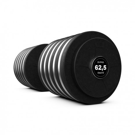Обрезиненная гантель с зафиксированными дисками Vulcano Disc Dumbbell Fat Grip 62,5kg 377-0625 бренда Eleiko позволяет эффективно развивать динамическую функциональную силу и прорабатывать мышцы верхней части тела с помощью разнообразных упражнений. Дисковая гантель весом 62,5 кг с вращающейся ручкой предназначена для выполнения различных упражнений, в том числе и олимпийских рывков гантелей. Для нагружения гантелей используются диски Vulcano Eleiko весом 1,25 и 2,5 кг. Черные полиуретановые диски чередуются с хромированными дисками, что придает гантелям стильный вид. Для простоты идентификации снарядов вес промаркирован белыми цифрами на торцах гантели. Это отличные гантели для оснащения тренажерных залов любого уровня.