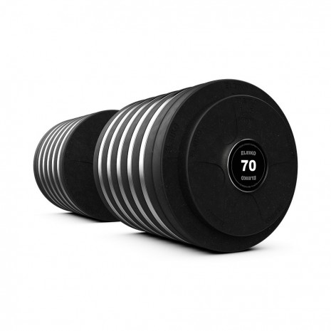 Качественная гантель весом 70 кг с зафиксированными дисками Vulcano Eleiko и вращающейся рукояткой подходит для оснащения тренажерных залов любого уровня.