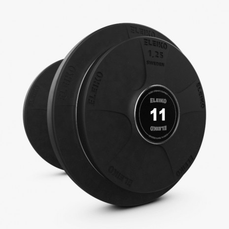 Обрезиненная гантель с зафиксированными дисками Vulcano Disc Dumbbells 11kg 376-0110 бренда Eleiko – дисковая гантель весом 11 кг, которая позволяет выполнять разнообразные упражнения, в том числе и олимпийские, как, например, рывки гантелей за счет вращающихся ручек. Для гантелей используются обрезиненные диски Eleiko весом 1,25 и 2,5 кг, и по мере увеличения веса они чередуются со стильными хромированными дисками. Для простоты идентификации гантелей маркировка веса выполнена четкими белыми цифрами.