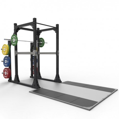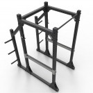 Стойка включает в себя перекладину для подтягивания и поддерживает широкий диапазон высот для жима лежа. Положения приседаний четко обозначены на каждом пятом отверстии для обеспечения ровного положения. Рама имеет открытую конструкцию и может использоваться со спортивной скамьей и платформой для тяжелой атлетики. Шесть держателей для хранения дисков позволяют держать дополнительные веса в пределах досягаемости для удобного доступа.