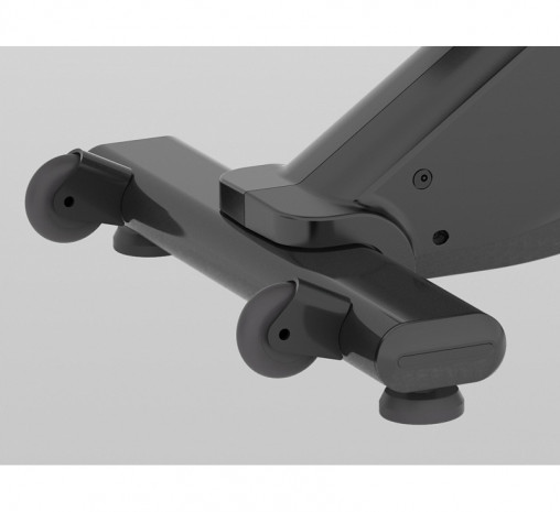 Алюминиевый маховик весом 17 кг обеспечивает равномерное распределение веса, что гарантирует плавность вращения педалей и равномерное распределение нагрузки на всех скоростях. Вспомогательные ролики и резиновые подпятники облегчают перемещение тренажера.