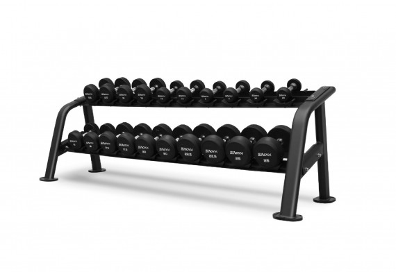 Обрезиненная поверхность гантелей обеспечивает защиту стоек под гантели, напольного покрытия и другого тренировочного оборудования от повреждений.